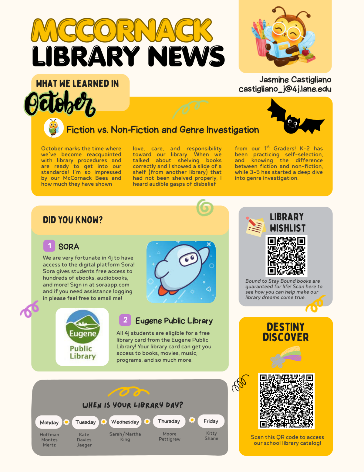 Volunteers: We're also looking for volunteers to help bring our upcoming projects and events to life. Whether it’s lending a hand at meetings, supporting fundraisers, popping popcorn, or helping in classrooms, every bit makes a difference. Find more information, please review this flyer and visit our PTO page. Sign up for volunteer information here: McCornack Volunteer Information.