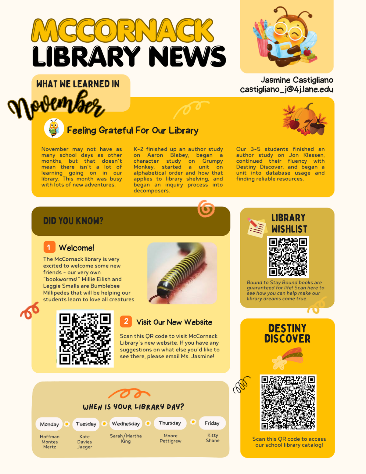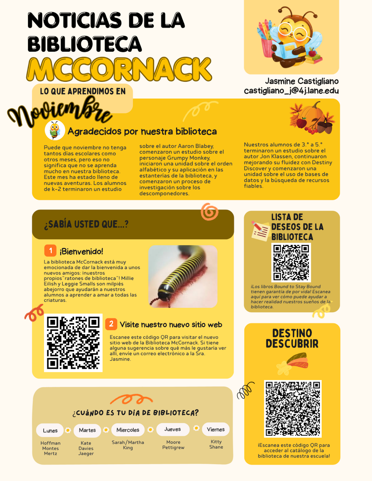 Volunteers: We're also looking for volunteers to help bring our upcoming projects and events to life. Whether it’s lending a hand at meetings, supporting fundraisers, popping popcorn, or helping in classrooms, every bit makes a difference. Find more information, please review this flyer and visit our PTO page. Sign up for volunteer information here: McCornack Volunteer Information.