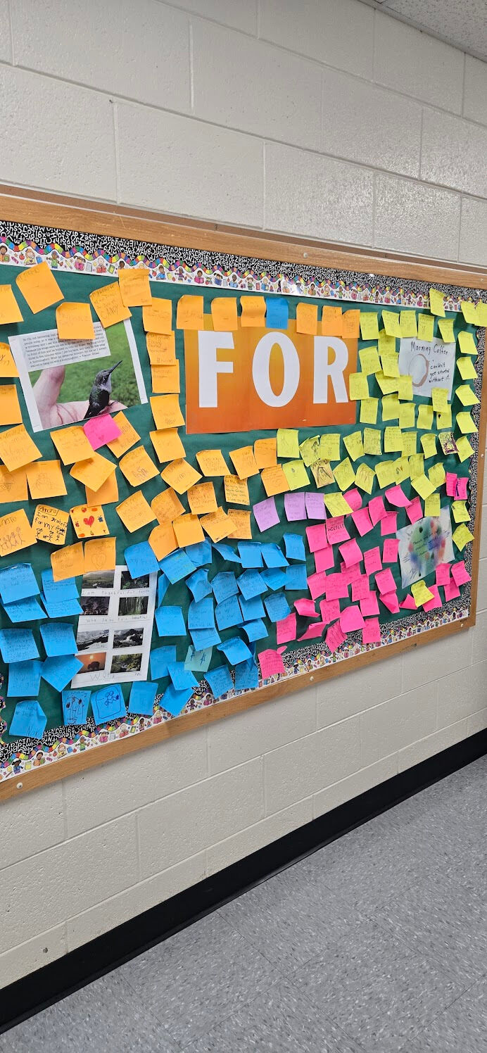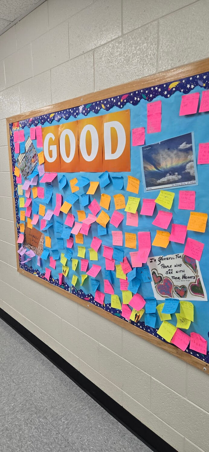 Kindness Campaign: No one wants to take down the thousands of sticky notes our students wrote over the two weeks of the campaign. In an effort to uplift our community, our school ran a two-week Look for the Good Campaign through the Look for the Good Project. The purpose of the campaign was to help us all practice gratitude and kindness, and to encourage students to improve their connections with the people who matter to them.