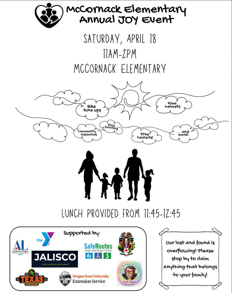 McCornack’s JOY Event: McCornack is excited to host our upcoming Family JOY Event on April 18th from 11:00 a.m. - 2:00 p.m, a special day created to directly support our McCornack families and celebrate our wonderful community.